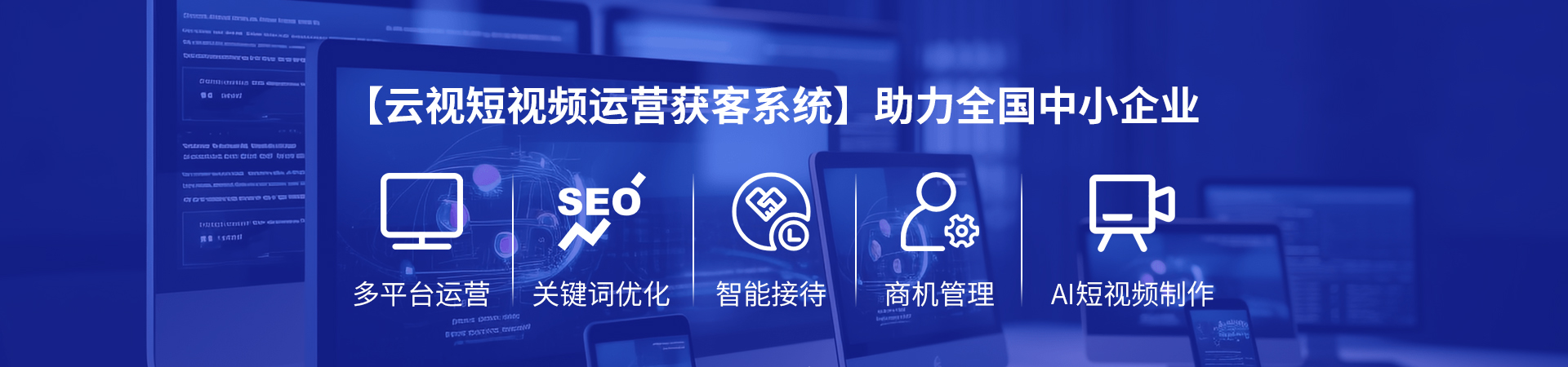 广州云视信息服务有限公司是短视频平台企业帐号运营服务商。云视AI获客短视频运营推广系统是倾力打造的一站式短视频营销解决方案平台,是基于短视频平台生态下的全链路营销系统,获得巨量官方各项数据及接口支持,围绕“短视频标签”,以“有效播放量获取”为最终目的,分别从“账号诊断”、“账号标签管理与定位”、“账号标签打造”、“播放量咨询转化”、“营销数据分析”与“优化账号标签定位”六大环节覆盖短视频营销全链路,并提供基础与能力的技术赋能,满足企业不同场景下的营销诉求。